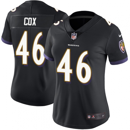Women's Nike Baltimore Ravens #46 Morgan Cox Black Alternate Vapor Untouchable Limited Player NFL Jersey