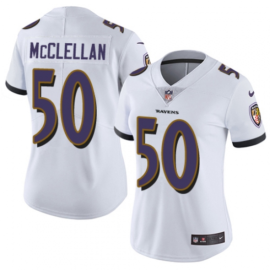 Home>NFL>Baltimore Ravens>Albert McClellan>Women's Nike Baltimore Ravens #50 Albert McClellan White Vapor Untouchable Limited Player NFL Jersey