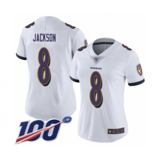 Women's Nike Baltimore Ravens #8 Lamar Jackson White Vapor Untouchable Limited Player 100th Season NFL Jersey