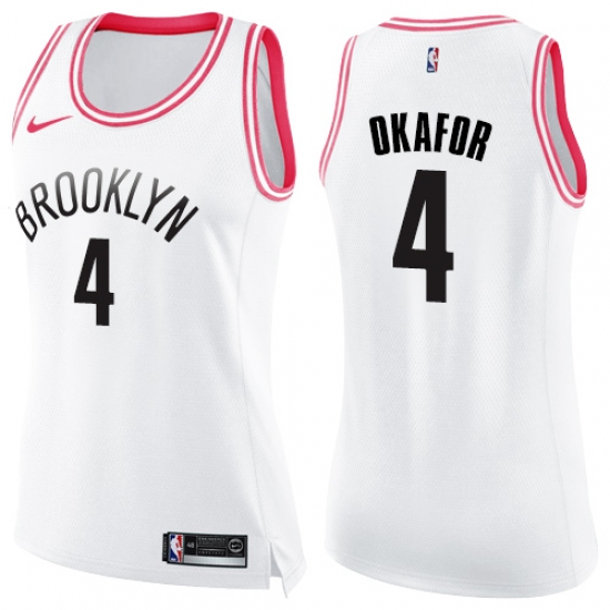Home>NBA>Brooklyn Nets>Jahlil Okafor>Women's Nike Brooklyn Nets #4 Jahlil Okafor Swingman White/Pink Fashion NBA Jersey