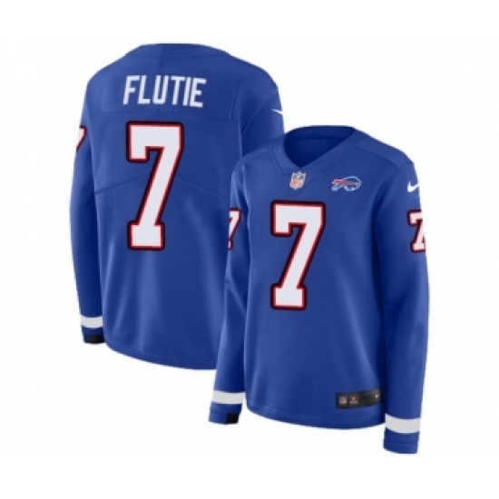 >Women's Nike Buffalo Bills #7 Doug Flutie Limited Royal Blue Therma Long Sleeve NFL Jersey