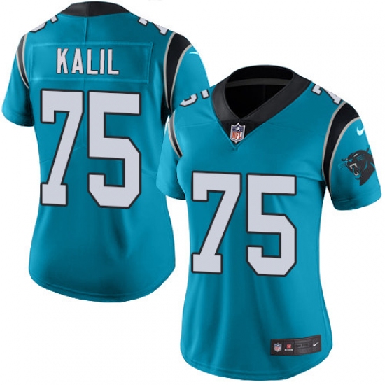 Women's Nike Carolina Panthers #75 Matt Kalil Limited Blue Rush Vapor Untouchable NFL Jersey