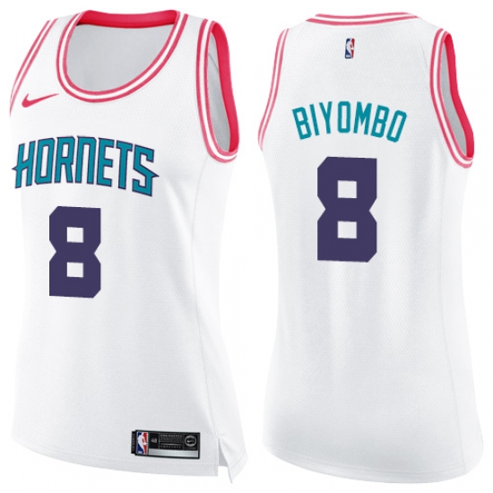 Women's Nike Charlotte Hornets #8 Bismack Biyombo Swingman White Pink Fashion NBA Jersey