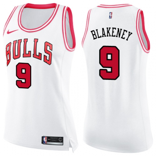 Women's Nike Chicago Bulls #9 Antonio Blakeney Swingman White Pink Fashion NBA Jersey