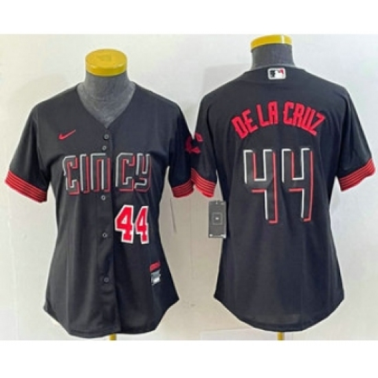 Women's Nike Cincinnati Reds #44 Elly De La Cruz Black 2023 City Connect Cool Base Stitched Baseball Jersey