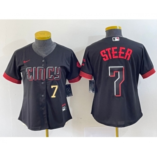Women's Nike Cincinnati Reds #7 Spencer Steer Numer Black 2023 City Connect Cool Base Stitched Baseball Jersey