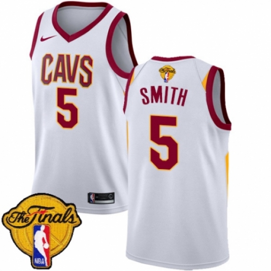 Women's Nike Cleveland Cavaliers #5 J.R. Smith Authentic White 2018 NBA Finals Bound NBA Jersey - Association Edition