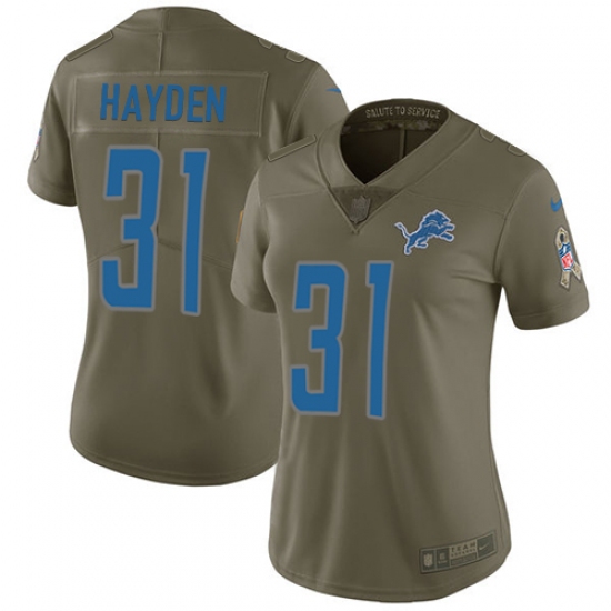 Home>NFL>Detroit Lions>D.J. Hayden>Women's Nike Detroit Lions #31 D.J. Hayden Limited Olive 2017 Salute to Service NFL Jersey