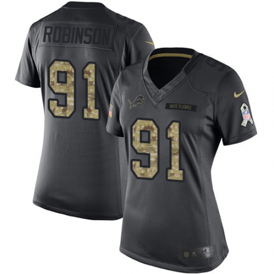 Home>NFL>Detroit Lions>A'Shawn Robinson>Women's Nike Detroit Lions #91 A'Shawn Robinson Limited Black 2016 Salute to Service NFL Jersey