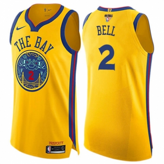 >Women's Nike Golden State Warriors #2 Jordan Bell Swingman Gold 2018 NBA Finals Bound NBA Jersey - City Edition