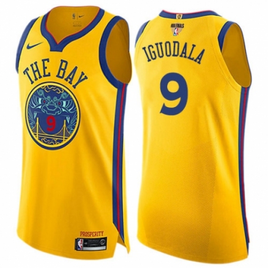 >Women's Nike Golden State Warriors #9 Andre Iguodala Swingman Gold 2018 NBA Finals Bound NBA Jersey - City Edition