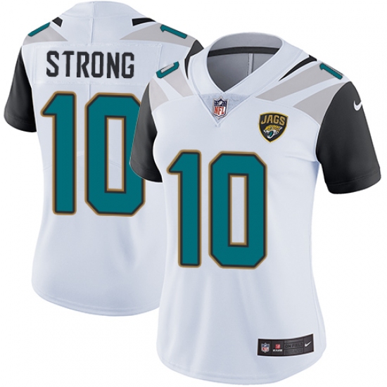 Home>NFL>Jacksonville Jaguars>Jaelen Strong>Women's Nike Jacksonville Jaguars #10 Jaelen Strong White Vapor Untouchable Limited Player NFL Jersey