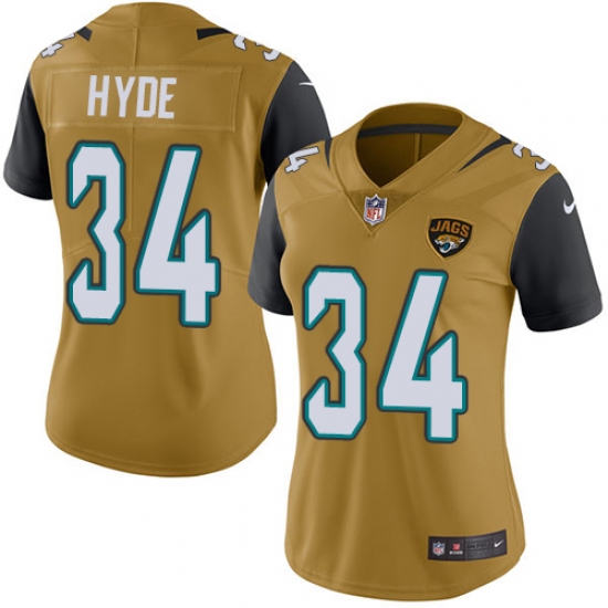 Women's Nike Jacksonville Jaguars #34 Carlos Hyde Limited Gold Rush Vapor Untouchable NFL Jersey