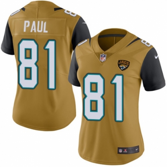 Women's Nike Jacksonville Jaguars #81 Niles Paul Limited Gold Rush Vapor Untouchable NFL Jersey