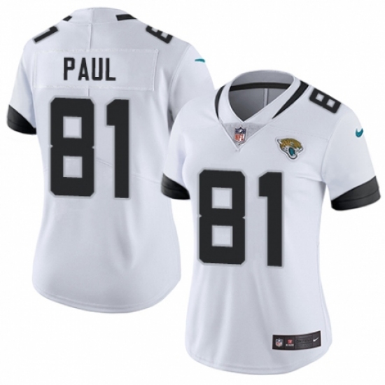 >Women's Nike Jacksonville Jaguars #81 Niles Paul White Vapor Untouchable Limited Player NFL Jersey