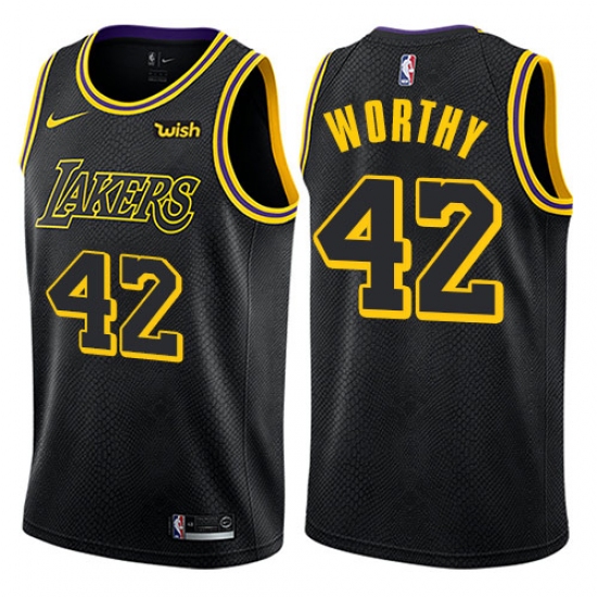 Home>NBA>Los Angeles Lakers>James Worthy>Women's Nike Los Angeles Lakers #42 James Worthy Swingman Black NBA Jersey - City Edition