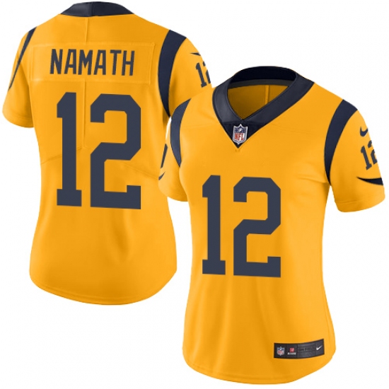 Women's Nike Los Angeles Rams #12 Joe Namath Limited Gold Rush Vapor Untouchable NFL Jersey