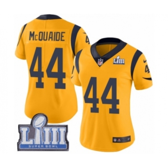 Women's Nike Los Angeles Rams #44 Jacob McQuaide Limited Gold Rush Vapor Untouchable Super Bowl LIII Bound NFL Jersey