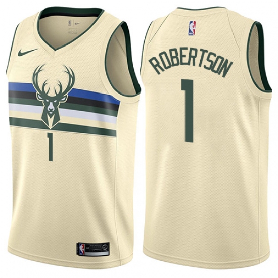 Home>NBA>Milwaukee Bucks>Oscar Robertson>Women's Nike Milwaukee Bucks #1 Oscar Robertson Swingman Cream NBA Jersey - City Edition