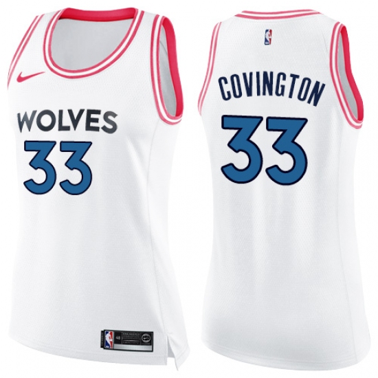 Women's Nike Minnesota Timberwolves #33 Robert Covington Swingman White Pink Fashion NBA Jersey