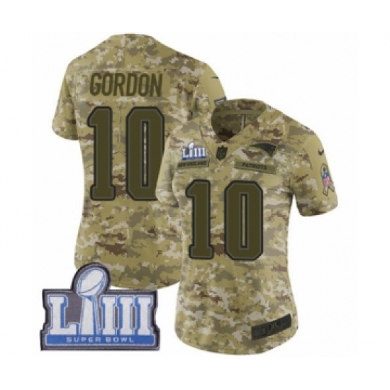 Women's Nike New England Patriots #10 Josh Gordon Limited Camo 2018 Salute to Service Super Bowl LIII Bound NFL Jersey