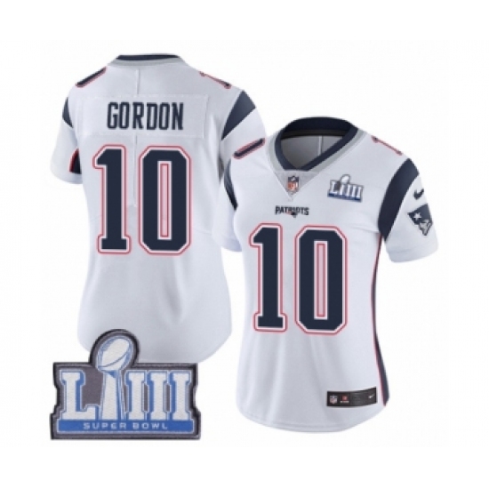 Women's Nike New England Patriots #10 Josh Gordon White Vapor Untouchable Limited Player Super Bowl LIII Bound NFL Jersey