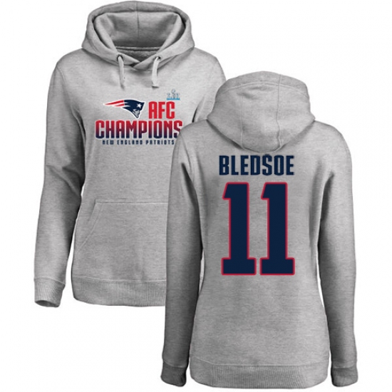 >Women's Nike New England Patriots #11 Drew Bledsoe Heather Gray 2017 AFC Champions Pullover Hoodie