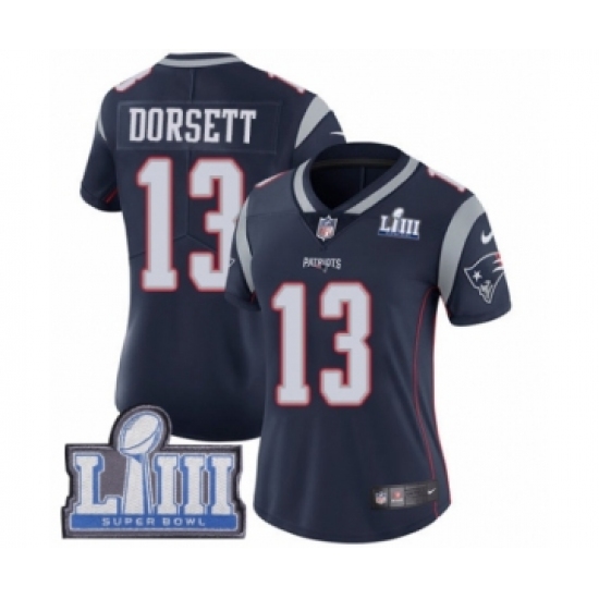 Women's Nike New England Patriots #13 Phillip Dorsett Navy Blue Team Color Vapor Untouchable Limited Player Super Bowl LIII Bound NFL Jersey