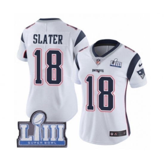 Women's Nike New England Patriots #18 Matthew Slater White Vapor Untouchable Limited Player Super Bowl LIII Bound NFL Jersey