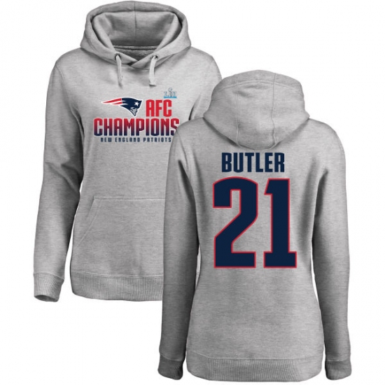 Women's Nike New England Patriots #21 Malcolm Butler Heather Gray 2017 AFC Champions Pullover Hoodie
