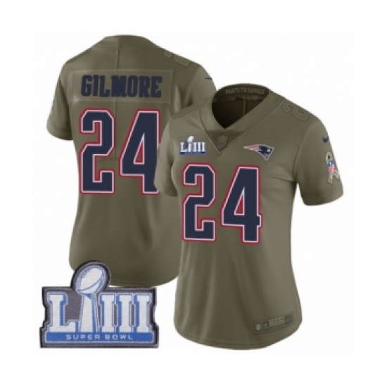 >Women's Nike New England Patriots #24 Stephon Gilmore Limited Olive 2017 Salute to Service Super Bowl LIII Bound NFL Jersey