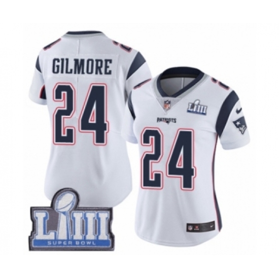>Women's Nike New England Patriots #24 Stephon Gilmore White Vapor Untouchable Limited Player Super Bowl LIII Bound NFL Jersey