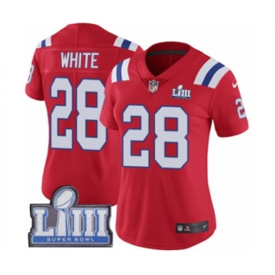 Women's Nike New England Patriots #28 James White Red Alternate Vapor Untouchable Limited Player Super Bowl LIII Bound NFL Jersey