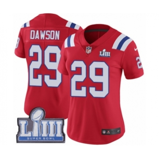Women's Nike New England Patriots #29 Duke Dawson Red Alternate Vapor Untouchable Limited Player Super Bowl LIII Bound NFL Jersey