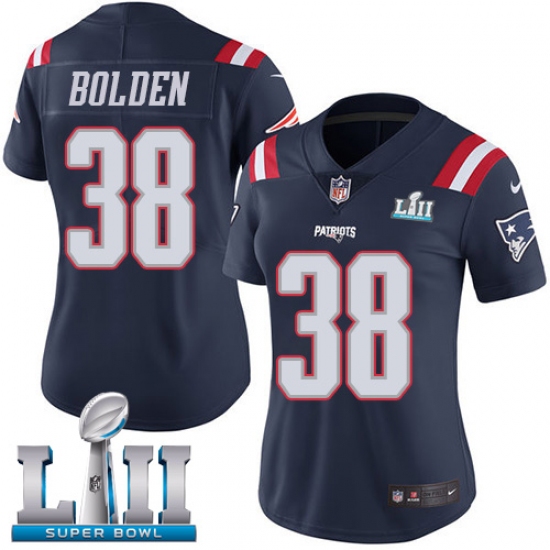 Women's Nike New England Patriots #38 Brandon Bolden Limited Navy Blue Rush Vapor Untouchable Super Bowl LII NFL Jersey