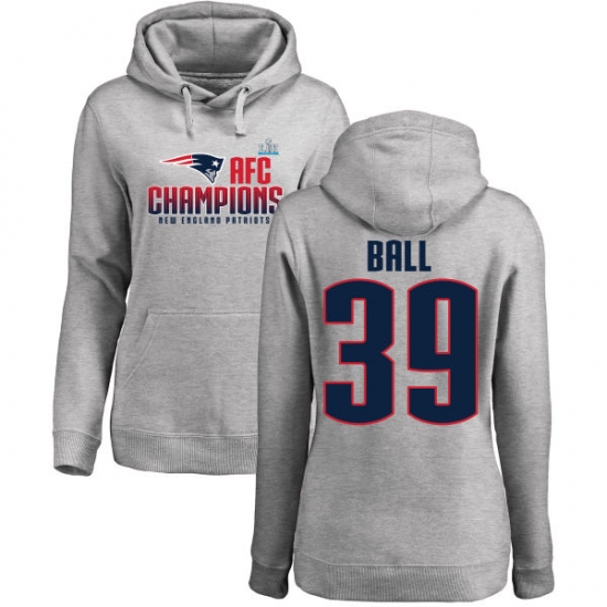 >Women's Nike New England Patriots #39 Montee Ball Heather Gray 2017 AFC Champions Pullover Hoodie