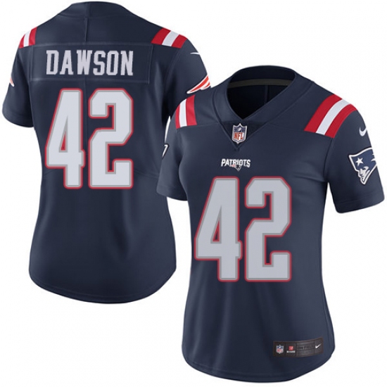 >Women's Nike New England Patriots #42 Duke Dawson Limited Navy Blue Rush Vapor Untouchable NFL Jersey