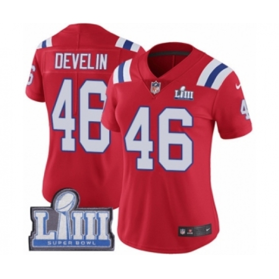 Women's Nike New England Patriots #46 James Develin Red Alternate Vapor Untouchable Limited Player Super Bowl LIII Bound NFL Jersey