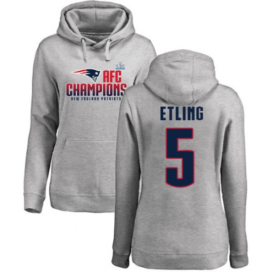 >Women's Nike New England Patriots #5 Danny Etling Heather Gray 2017 AFC Champions Pullover Hoodie