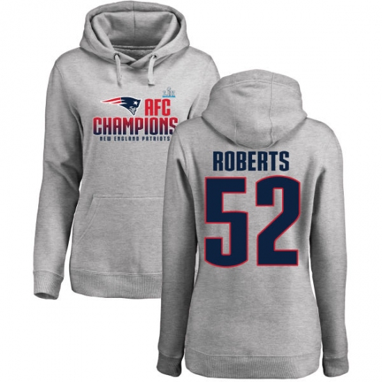 >Women's Nike New England Patriots #52 Elandon Roberts Heather Gray 2017 AFC Champions Pullover Hoodie