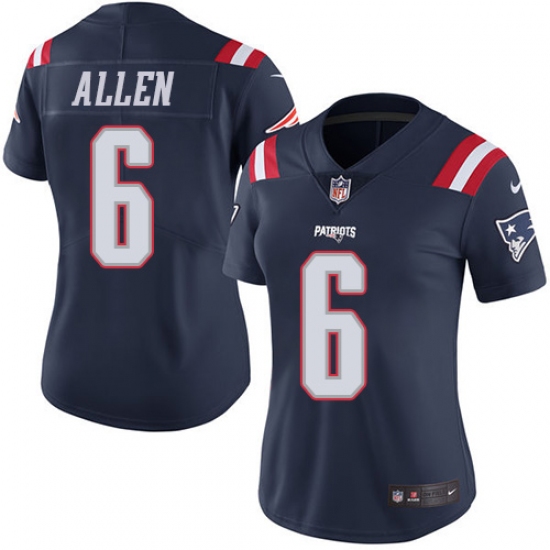 Women's Nike New England Patriots #6 Ryan Allen Limited Navy Blue Rush Vapor Untouchable NFL Jersey