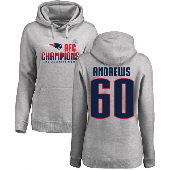 >Women's Nike New England Patriots #60 David Andrews Heather Gray 2017 AFC Champions Pullover Hoodie