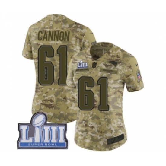 >Women's Nike New England Patriots #61 Marcus Cannon Limited Camo 2018 Salute to Service Super Bowl LIII Bound NFL Jersey