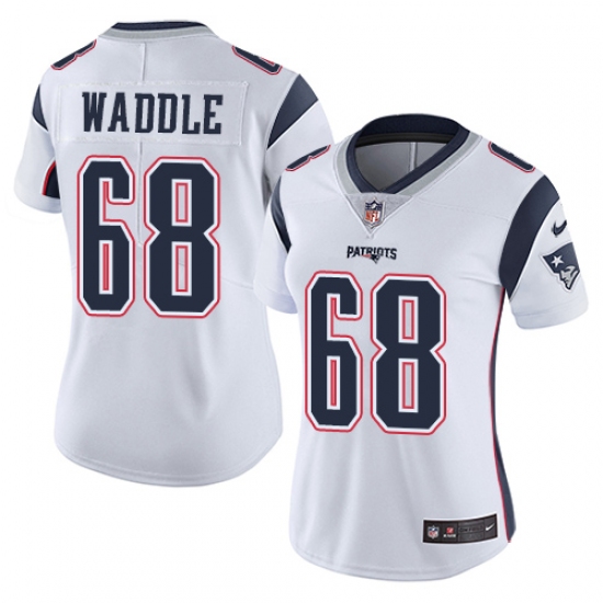Home>NFL>New England Patriots>LaAdrian Waddle>Women's Nike New England Patriots #68 LaAdrian Waddle White Vapor Untouchable Limited Player NFL Jersey