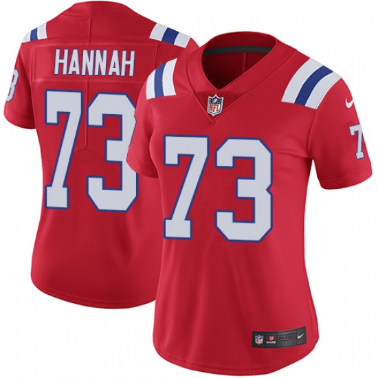 Home>NFL>New England Patriots>John Hannah>Women's Nike New England Patriots #73 John Hannah Red Alternate Vapor Untouchable Limited Player NFL Jersey