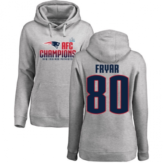 Women's Nike New England Patriots #80 Irving Fryar Heather Gray 2017 AFC Champions Pullover Hoodie