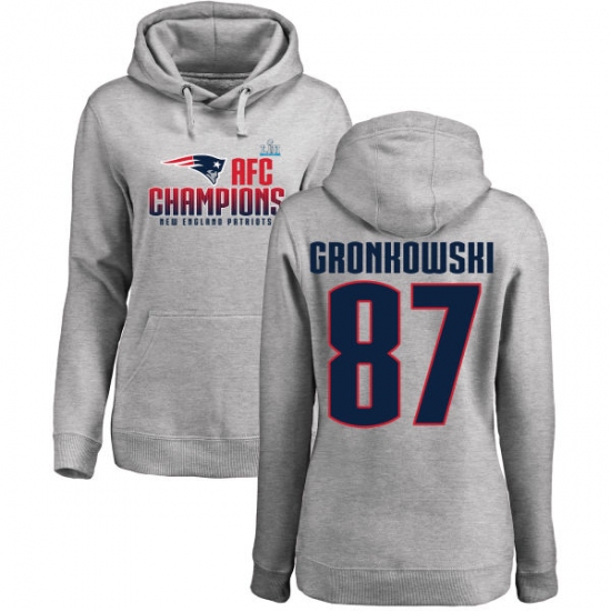 Women's Nike New England Patriots #87 Rob Gronkowski Heather Gray 2017 AFC Champions Pullover Hoodie