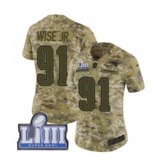 Women's Nike New England Patriots #91 Deatrich Wise Jr Limited Camo 2018 Salute to Service Super Bowl LIII Bound NFL Jersey