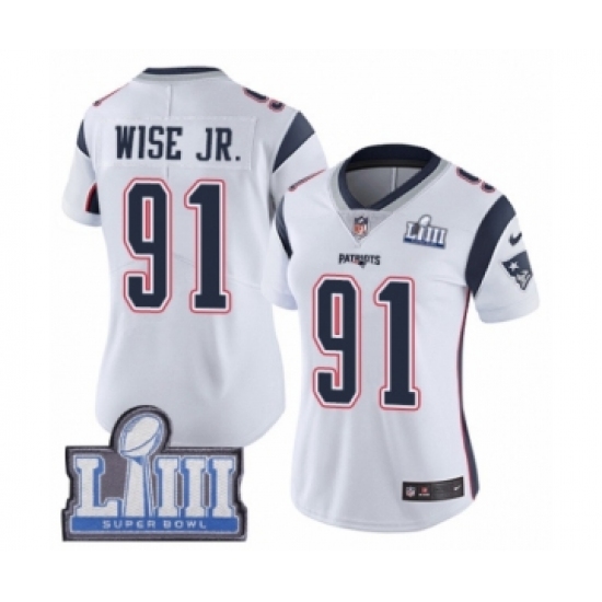 Women's Nike New England Patriots #91 Deatrich Wise Jr White Vapor Untouchable Limited Player Super Bowl LIII Bound NFL Jersey