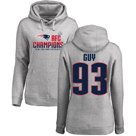 Women's Nike New England Patriots #93 Lawrence Guy Heather Gray 2017 AFC Champions Pullover Hoodie
